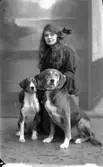 Enligt notering: "Kvinna med knähund. Lis Olsson, Skistad".