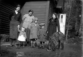 Enligt noteringar: "Fritz Oskar Hansson (1886-1973) med familj. 'Fritz på Korpås' var anställd bl a som portvakt på Munkedals bruk. Huset är ett typiskt egnahem byggt av en arbetare på bruket. Nedanför trappan står dottern Aina, senare gift Thorsell, som tillsammans med sin man övertog huset efter föräldrarna." (BJ)