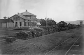 Tvåvånings stationshus i trä. Stationen omb. 1929, Plan över ombyggnaden, . 168,0 m ö h. Gamla stationshuset rivet i februari 1992. Nytt stationshus i tegel, "Centralhuset" byggdes 1990 - 92 och blev invigt 14/2 1992