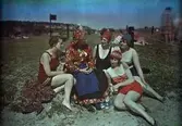 Premiär i Gustavsvik 13 maj 1966 Män och kvinnor i baddräkter runt simbassäng