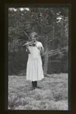 "Eklund, Sofielund" En ung kvinna spelar fiol i skogen.