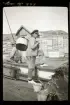 Ark med monterat foto och text: "Metande man samt mjärdar i Räisälä."