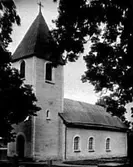 Folkskolan och i bakgrunden syns kyrktornet på Sävare kyrka. Skolan byggdes 1934 och användes till 1973. Används nu som församlingshem o pastorsexpedition.