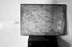Västra mark 5 juni 1968 I textilverkstaden på Västra marks sjukhus sitter en kvinna och dricker kaffe vid ett litet bord i förgrunden. Hon är klädd i en vit kofta och vitrandig klänning och bär glasögon. Hon har ett halsband runt halsen. Mittemot henne sitter en kvinna och syr på ett tygstycke. Hon är klädd i vit klänning och tofflor. Vid ett annat bord i bakgrunden sitter en kvinna i en vit kofta samt en vit klänning och dricker kaffe. Hon har en vit ring på höger ringfinger. En annan kvinna klädd i brokig klänning sitter bakom henne och arbetar.