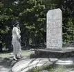 Skara. Stadsträdgården. Kronprinsen skriver sitt namn på minnesstenen i Skara Stadsträdgård den 10.5.1923.