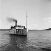 S/S WILLIAM LINDBERG passerar slätpricken väst sydväst Ekholmens ångbåtsbrygga utanför Tenösund. I bakgrunden Vaxholm.