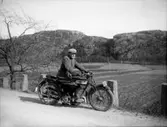 Motorcykeltrio besöker Kvistrum, Munkedal, 1930-talet.