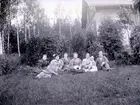 "Ungdomar vid "stugan" den 28 juni 1894. Bästa plåten, som är skafd i ena hörnet."