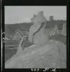 Pojke betraktar sommargrav på dödsholmen i Vuoskojaure, Jukkasjärvi sn.