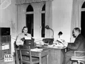 Kassakontoret på AB Elektro-Apparat i kvarteret Yxan. Från vänster: Agne Linde, kontorschef. Aina Johansson, kontorsbiträde. Gittan Brovall, kontorsbiträde.