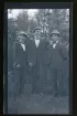 "Abrahamsson, Linden Karlsson, Berga" Porträtt av tre unga män som poserar vid ett staket.