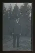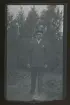 "Gotthard Gustavsson, Äs" Porträtt av en ung man sittandes på en stor sten i skogen.