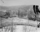 Vinterbild från Södra vägen, Uddevalla. Bebyggelse av låga trähus.