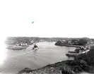 Enligt Bengt Lundins noteringar: "Lyckorna. Vy från villa "Tomtebo" mot badhuset".