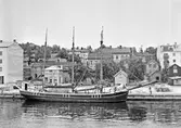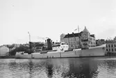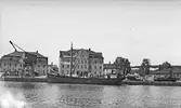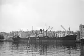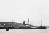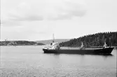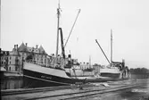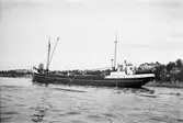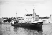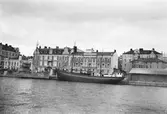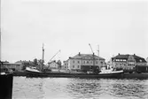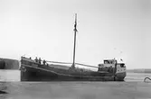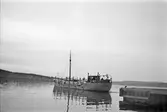 Nätra Express vid Konsums brygga. Fiskaren Ola Lundgren hjälper passagerare ombord