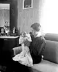 Rumsinteriör, barndop, en kvinna och en baby. Anita och Rolf Östansjö