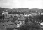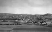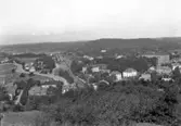 Flygfoto över västra delen av Kvarnholmen samt intilliggande delar av Malmen. Fängelset markerat med X.