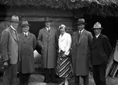 Upplands fornminnesförening på utflykt till Lottas gård, Stor Kvek, Fröslunda socken, Uppland 1930