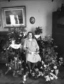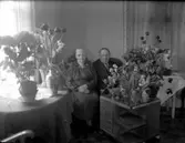 Uppgift enligt fotografen: "Grupp. Dir. V.G. Thorburn sommarvilla. Fru Agrel 80 år, med blommor."