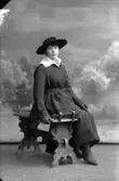 Porträtt av modell i hatt och handske, av Jacques Fath. Inspirerad av böndernas hattar, japanska träsnitt. För Svensk Damtidning.