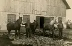 Heljesgården, Bolum. Lars Eriksson hämtar hästar på Hästavallen. Unghäst och hästen Docka. År 1935.