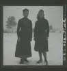 Porträtt av två kvinnor i kolt som står vända emot varandra.