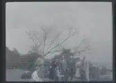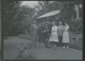 "Dahlby 19 juni 1883." Man, kvinna, barn och hund vid veranda. Akvarell av Fritz von Dardel.