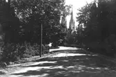 Drottninggatan mot norr. Södra kyrkogården till vänster. Till höger Kristinaskolan, med adress Drottninggatan 61.