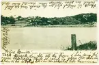 Båtar vid brygga på Utö. I bakgrunden Utö Kvarn.