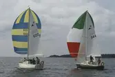 Två segelbåtar på Vänern. I förgrunden Albin Viggen HIKKADUUVA, i bakgrunden en Albin Vega.