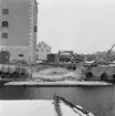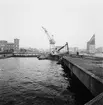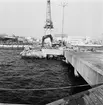 Vykort, "Varberg. Kall- och varmbadhusen från hamnpiren." Bilden tagen efter 1903, då kallbadhuset (till höger) återuppförts efter en stormskada vid jul1902.