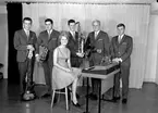 Skara Manskörs 30-årsjubileum, 1951. Veteraner hedrade med Västergötlands sångarförbunds medalj. Stående från vänster Erik Mattson, Hugo Falk, Ivar Hagelin, John Green, Carl Blad. Sittande från vänster Henrik Bilke, Heribert Landin, John Holm.