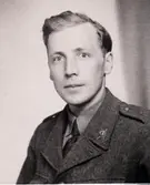 Lars Eriksson 3:e från vänster, längst till höger Bergkvist med hund, i det militära i Torneå 1940-talet.