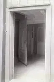 Enköping, kvarteret Borgmästaren nr 4, 1 trappa upp, järnhandlare Jönssons våning, rakt fram fönster mot Kungsgatan. Maj 1957