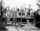 Två hus. "Gröne backe" på Rådavägen 7, Sjövalla 1:1, Stensjön. Denna bruna träpanelsvilla, till vänster i bild, låg vackert belägen intill Rådavägen i den gröna backen norr om Stensjön. Villan revs 1991. Bilden är tagen 1991.