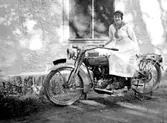 Motorcyklist framför hyreshus på Nygatan 67, 1930-tal