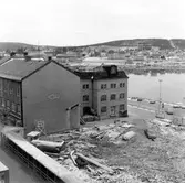 Bilden tagen från torget, i bakgrunden syns det nybyggda Domus. Tomt nr 26 och 27.