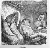 Enligt tidigare noteringar: "Foto av pennteckning: föreställande större villa och ekonomibyggnader vid kanal med trälastad skuta."