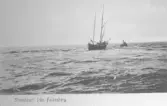 Kantrat fartyg i hamninloppet till Falkenbergs hamn.