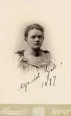 Tekla Forssell år 1896. Postexpeditör. Postexpeditör Tekla Erika Charlotta Forssell. Född 1862 i Skara, död 1940 i Skara. Dotter till Nils Edvard Forssell och Maria Forssell (f. Torin). Syster till Karl Bror Jacob Forssell och Emma Walter (f. Forssell). Ida Hammar drev fotoateljé på Skolgatan 13 & 14 i Skara. Firman etablerades 1895. Filial i Axvall och Nossebro.