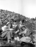 Enligt senare noteringar: "I en lummig vacker grönska solar sig Hjalmar och Elsa Jonasson, samt Johan Börjesson och Alinde Jonasson".