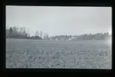 Flygbild över Locknevi kyrkan och bostadshus samt åkrar.