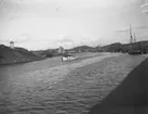 Vykort med motiv över passagerartrafiken vid hamnen i Sundsvall.
