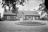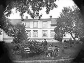 Någon gång under 1870-talets första hälft förevigade den danskättade fotografen Peder Anton Eriksén denna vy mot Ekebyborna kyrkoherdeboställe. Vackert belägen på en udde vid sjön Boren. Ursprungligen uppförd 1735 och länge ansedd som en av de "vackraste och bästa" i Aska kontrakt. Långt senare var bygganden dock i dåligt skick och 1928 byggdes ny prästgård närmare kyrkan. Året därpå skänktes den gamla prästgården till Nordiska museet för att flyttas till Skansen som prästgård till Seglora kyrka. Planen blev emellertid inte av utan huset blev kvar på ursprunglig plats och hyrdes ut. År 1989 skänkte Nordiska museet prästgården till Ask-Ekebyborna hembygdsförening. Samtidigt förklarades den som statligt byggnadsminne. Vid tiden för bilden disponerades bostället av kyrkoherde Per Dahlgren med familj. Det är honom vi ser intill rundeln till höger, rimligtvis vid sidan av maka, barn och tjänstefolk.