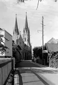Skara. Malmgatan vid Seminariet mot Domkyrkan.