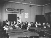 Studentskrivning i sängen. Övervakare adjunkt Ingrid Sahlin. 1952?
