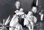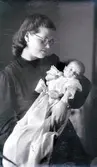 Alice och Evald Gustavsson med sonen Morgan. Hemma hos Alice i föräldrahemmet Sjöared, Hantverkarvägen 3. En annan uppgift säger att detta är: Ester och Henry Ahlqvist med barn.