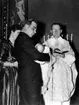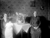 Alice och Evald Gustavsson med sonen Morgan. Hemma hos Alice i föräldrahemmet Sjöared, Hantverkarvägen 3. Enannan uppgift säger att detta är: Henry och Ester Ahlqvist med barn.