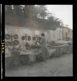 Portal till Katarina kyrkogård. Södermalm, Stockholm. En man passerar med ett paket under armen. 61/1941 Konrad Elméus Nm 102