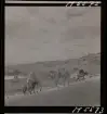 Bild av två män i vagn spänd bakom häst i familjenTaikons läger vid Johanneshov, södra Stockholm
